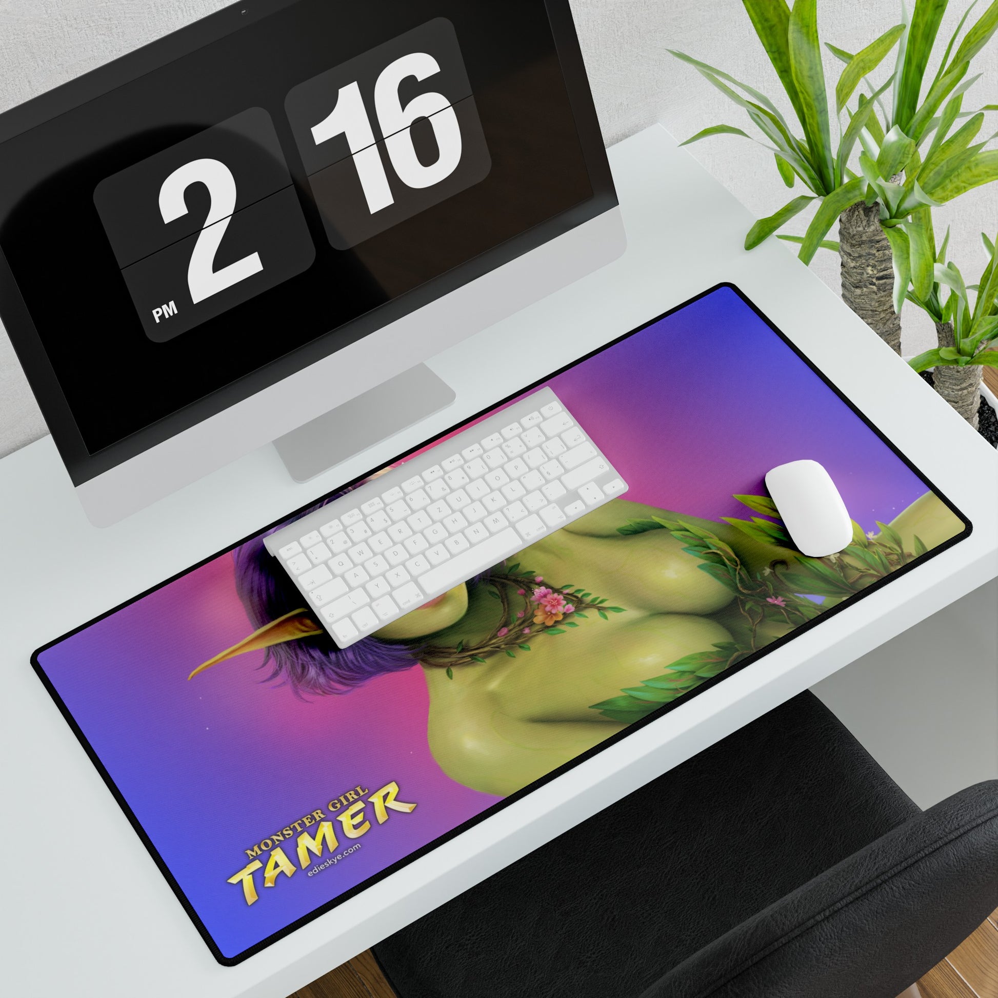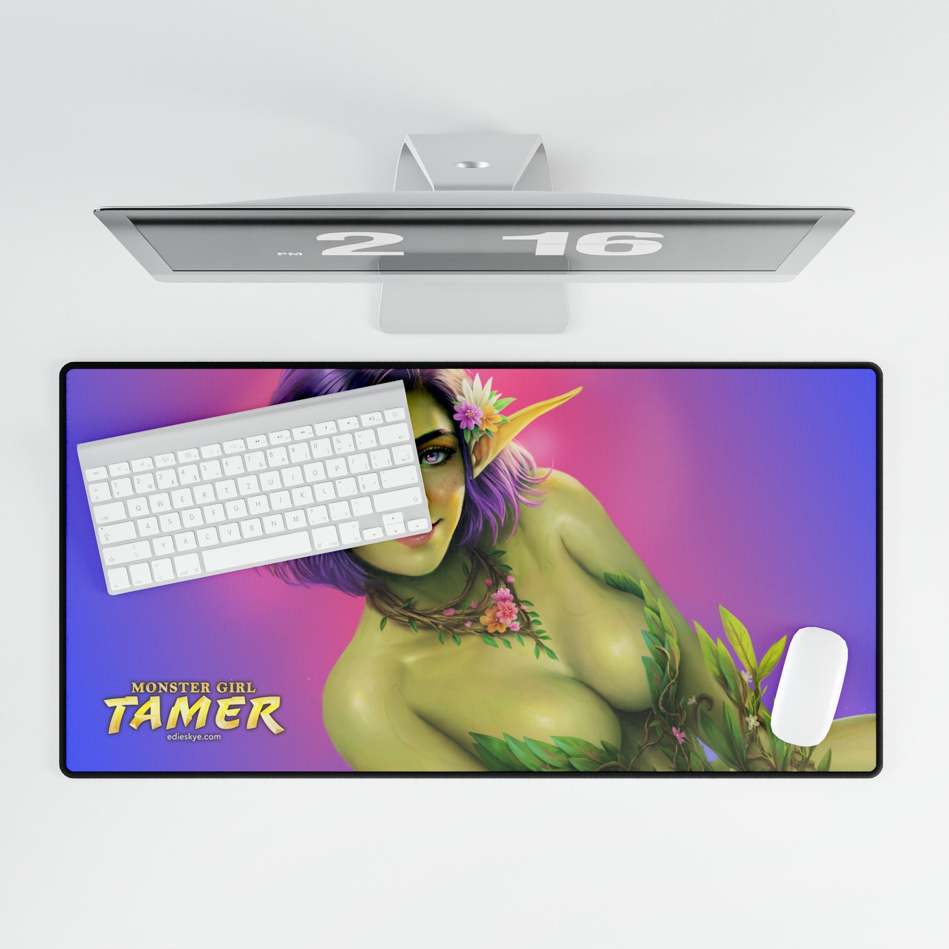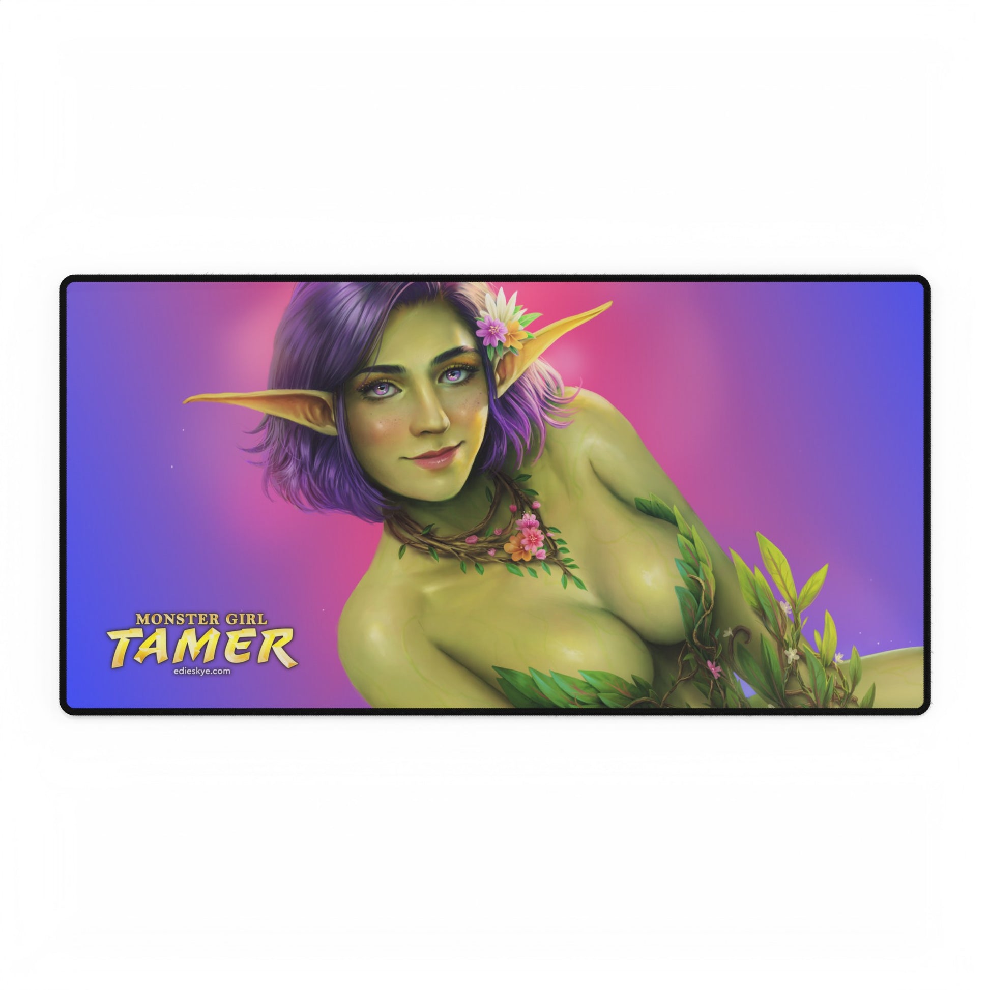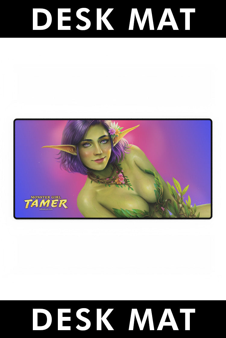 A 31.5" by 15.5" desk mat featuring cover art from I Power Up With Every Monster Girl I Defeat! (Monster Girl Tamer #1).
